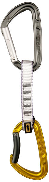 A Singing Rock Colt 16 egy sportmászásra tervezett expressz, ami egyenes nyelvű karabinerből, hajlított nyelvű karabinerből és 16 mm széles, 12 cm hosszú hevederből áll, ami ellenálló poliamidból készült. A Singing Rock Colt 16 egy ellenálló expressz teljes nyelvű karabinerekkel, ami főként sportmászásra tervezett. A felső dúralumínium Keylock karabiner egyenes nyelvű, ami speciálisan formázott bordákkal kiegészített a karabiner könnyű ki- és bepattintásáért a nitt felől. Az alsó dúralumínium karabiner hajlított nyelvű, ami a kötél könnyebb ki- és bepattintását teszi lehetővé. Kerekített formája könnyebb csúszást eredményez, ezzel csökkenti a kötél és maga a karabiner kopását. Könnyű ki- és bekapcsolását a csőr speciális, kovácsolt formája teszi lehetővé. A hot-forged I-beam könnyített konstrukció garantálja a nagy szilárdságot és az alacsony súlyt (akár 11 kN teherbírás nyitott nyelvvel). Minden karabiner egyénileg tesztelt 10 kN terheléssel. Korróziós ellenállása eloxált felülettel javított.   A karabinert 16 mm széles és 12 cm hosszú heveder támogatja, ami ellenálló poliamidból készült, az alsó karabiner gumigyűrűvel kiegészített a helyes pozíció megtartása és a kötél könnyebb bepattintása érdekében. A termék fő előnyei: Karabinerek felső karabiner teljes, egyenes nyelvvel alsó karabiner teljes, hajlított nyelvvel gumigyűrűvel rögzített alsó karabiner hosszirányú teherbírás: 26 kN keresztirányú teherbírás: 8 kN teherbírás nyitott nyelvvel: 11 kN teljes nyelv nyílása: 21 mm Heveder heveder hossza: 12 cm heveder szélessége: 16 mm ellenálló poliamid